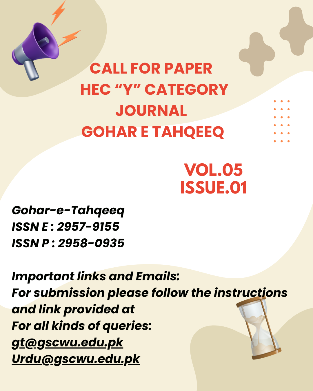 Gohar-e -Tahqeeq is a double-blind peer reviewed Biannual Urdu research Journal. To promote research, editing and critique in Urdu language and literature, the Department of Urdu is launching Gohar-e-Tahqeeq Urdu Journal, which will arrange for the publication of articles in accordance with the standards and regulations set by the Higher Education Commission, Pakistan. This will provide opportunities for researchers and critics in the field of research, editing and criticism in the Urdu world to publish articles.